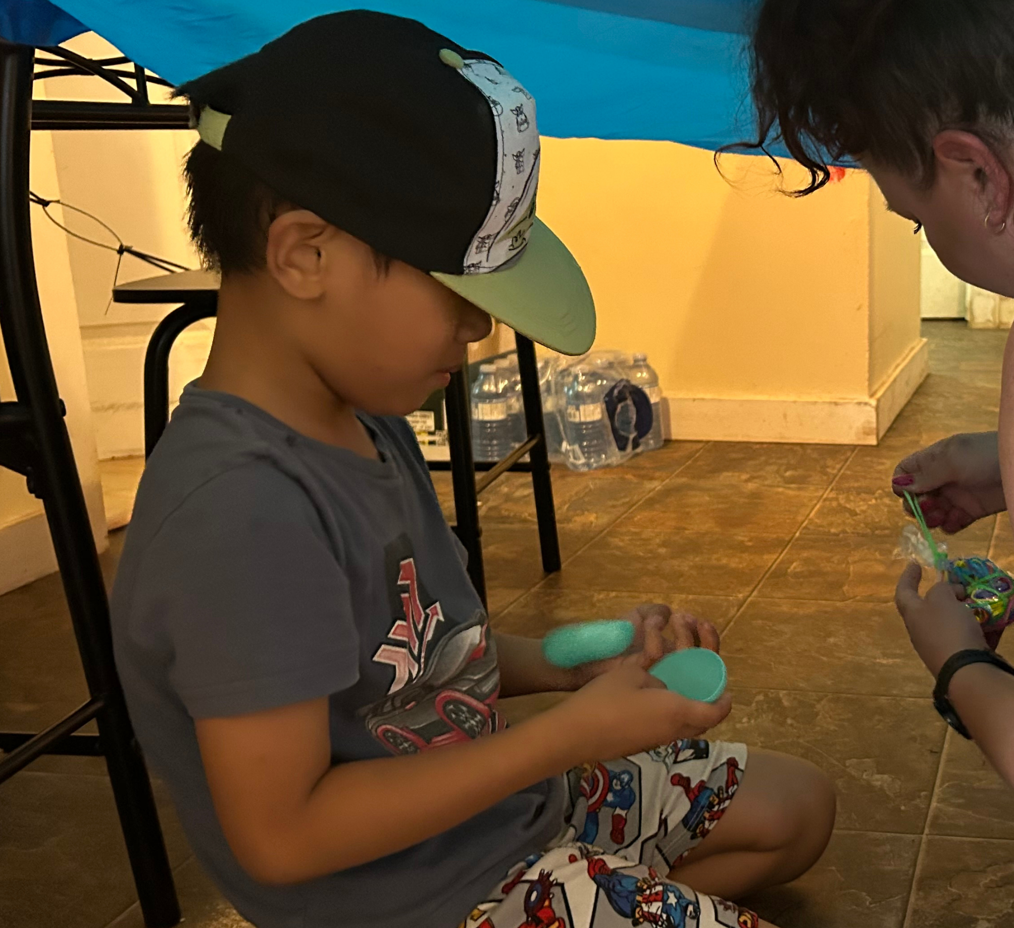 • Child untying knots using items around the house